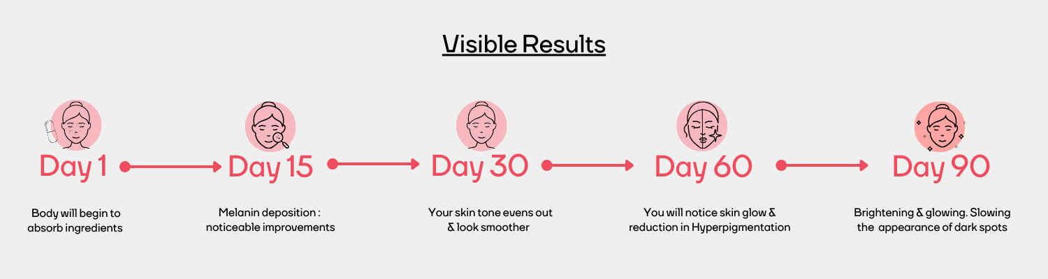 Results may vary from person to person. However, most users notice visible skin brightening and improved complexion within 4-8 weeks of regular use when combined with a healthy diet and proper skincare.
